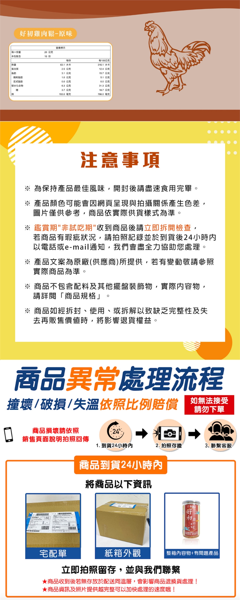 ※鑑賞期"非試吃期"收到商品後請立即拆開檢查,若商品有瑕疵狀況,請拍照記錄,並於到貨後24小時內以電話或e-mail通知,我們會盡全力協助您處理。