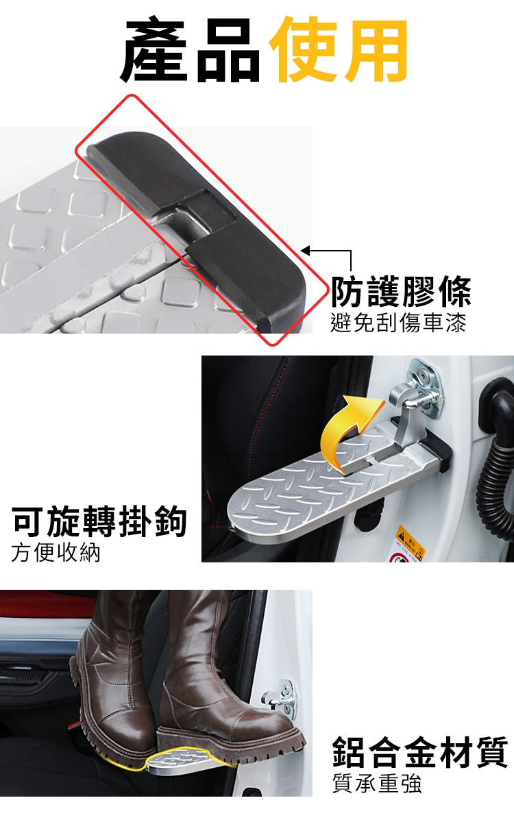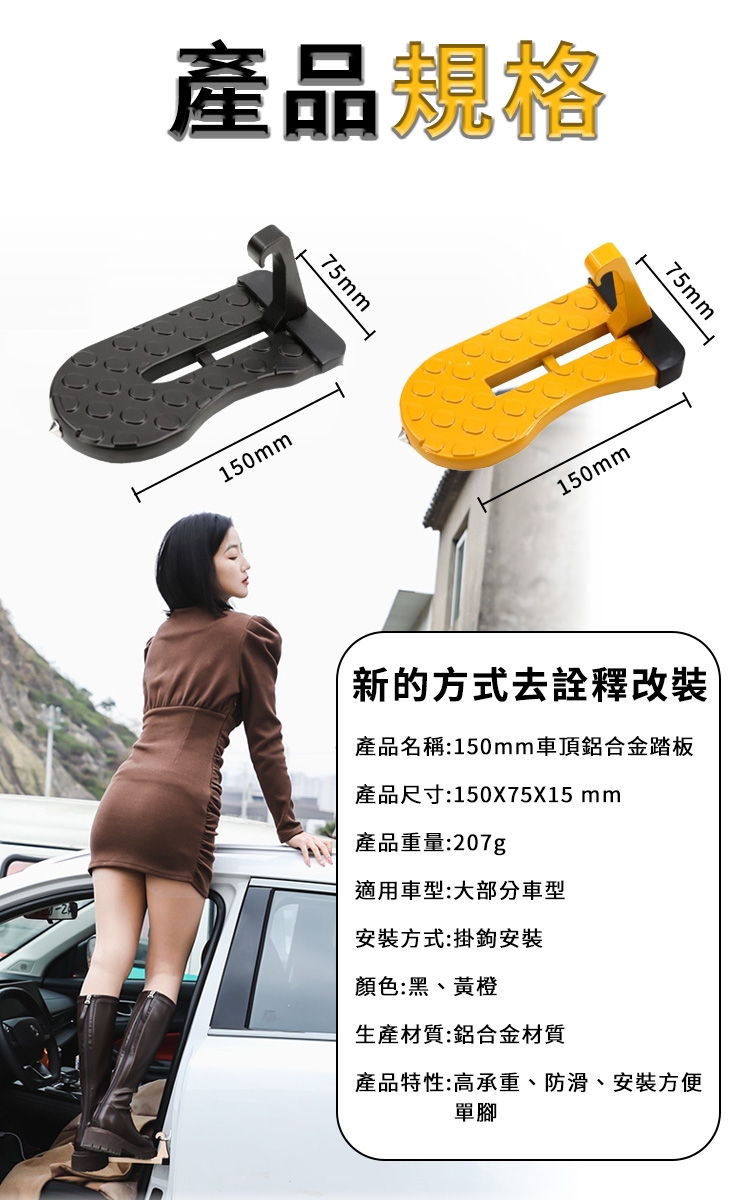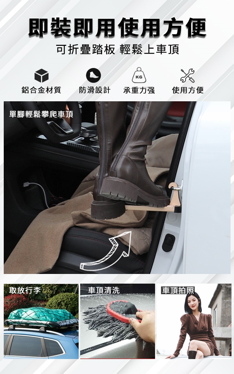 01.簡單掛於車門鎖扣,輕鬆登上車頂