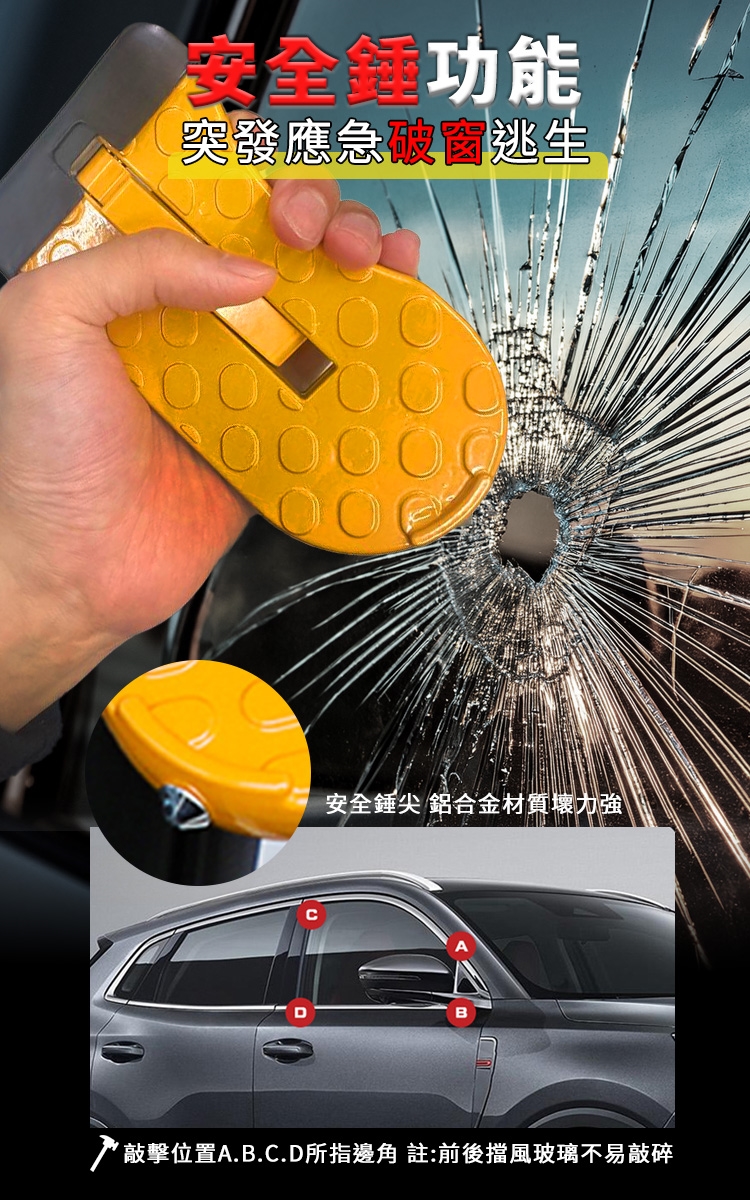 06.安全錘尖可作破窗器逃生使用,多功能用途