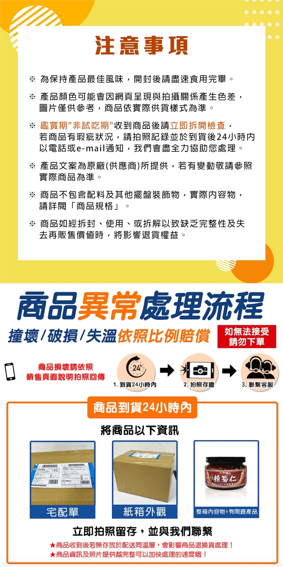 ※鑑賞期"非試吃期"收到商品後請立即拆開檢查,若商品有瑕疵狀況,請拍照記錄,並於到貨後24小時內以電話或e-mail通知,我們會盡全力協助您處理。