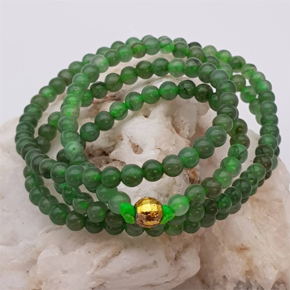 【肌容雪】天然A貨翡翠多圈翠綠手鍊 編號911