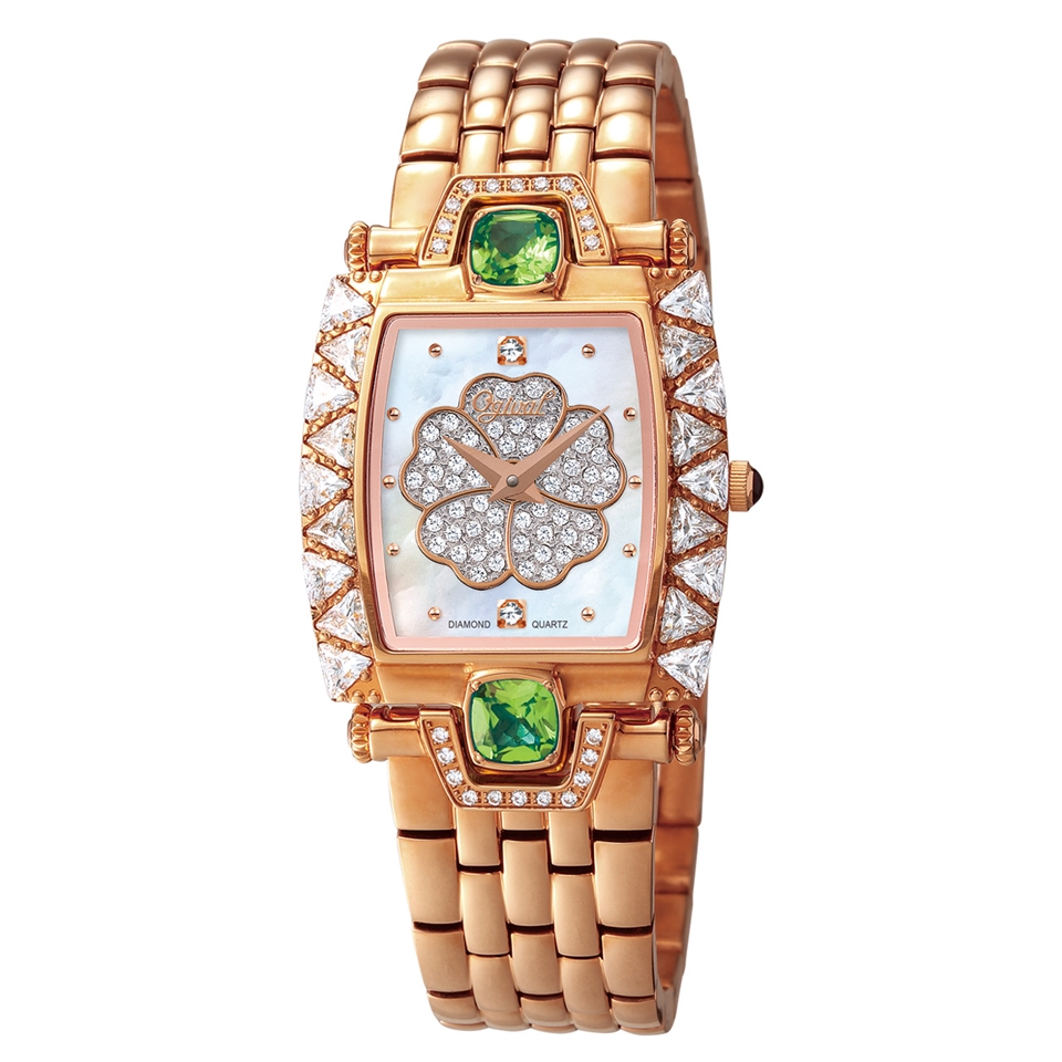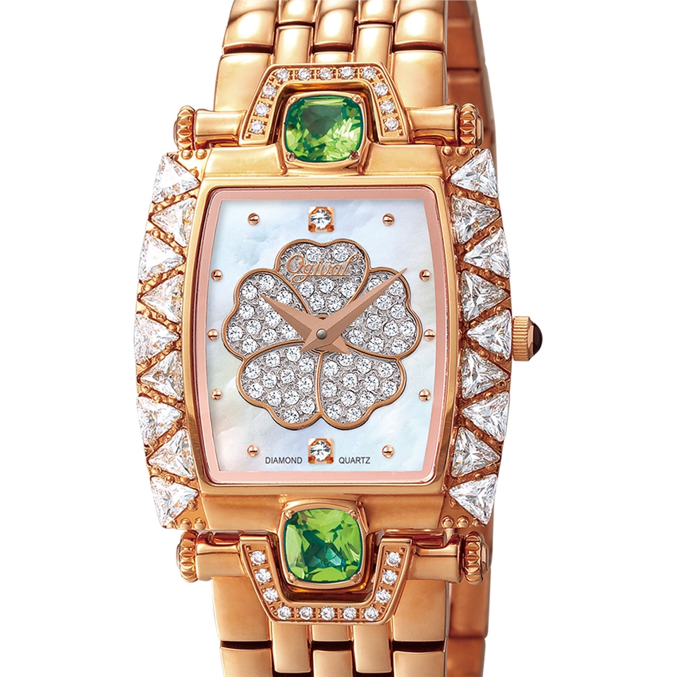 【Ogival 愛其華】山茶花系列 法式風情珠寶錶 珍珠母貝祖母綠
