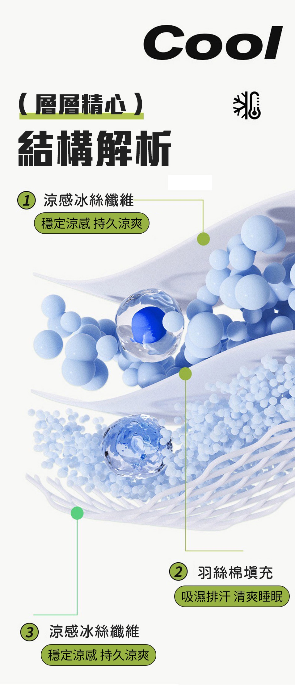 ❄ 快速散熱 - 科技涼感纖維,使人體散熱速度加倍、維持長時間接觸冷感。