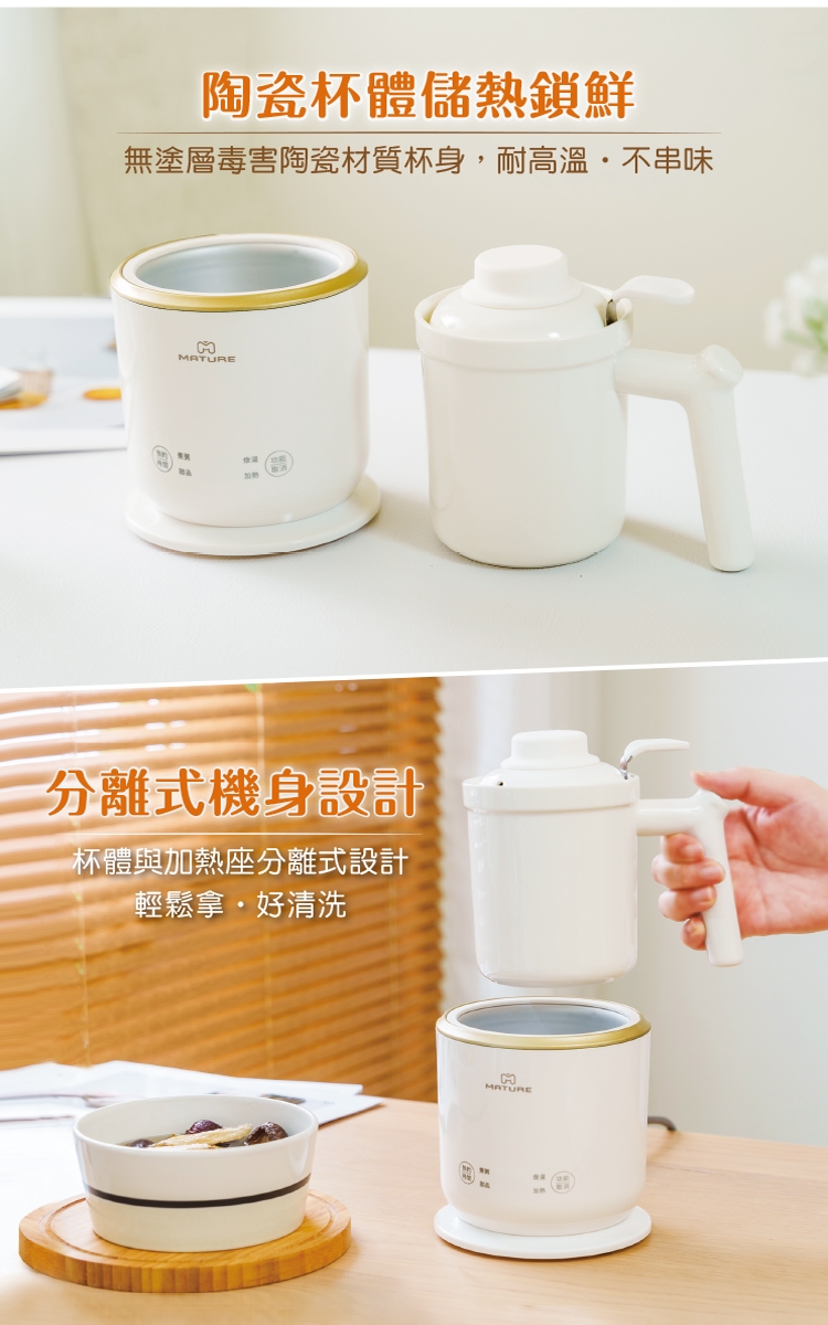 無塗層陶瓷材質杯體儲熱鎖鮮,給您適合的溫度