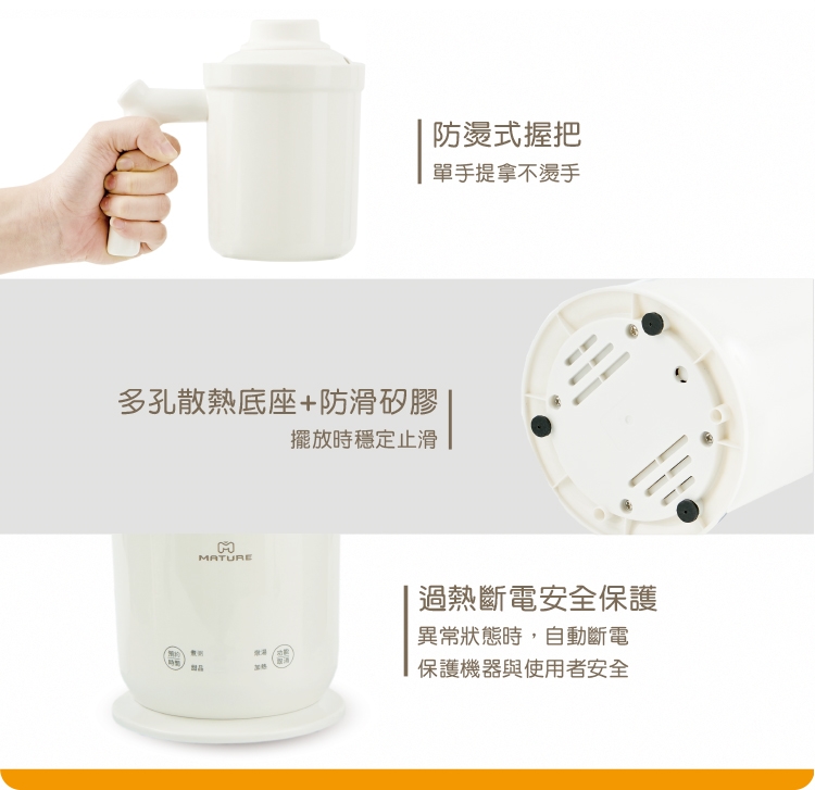 商品材質:杯體含蓋-陶瓷、杯蓋隔熱套-矽膠、機身-PC塑膠、PP塑膠、量杯-PP塑膠、濾網-304不鏽鋼