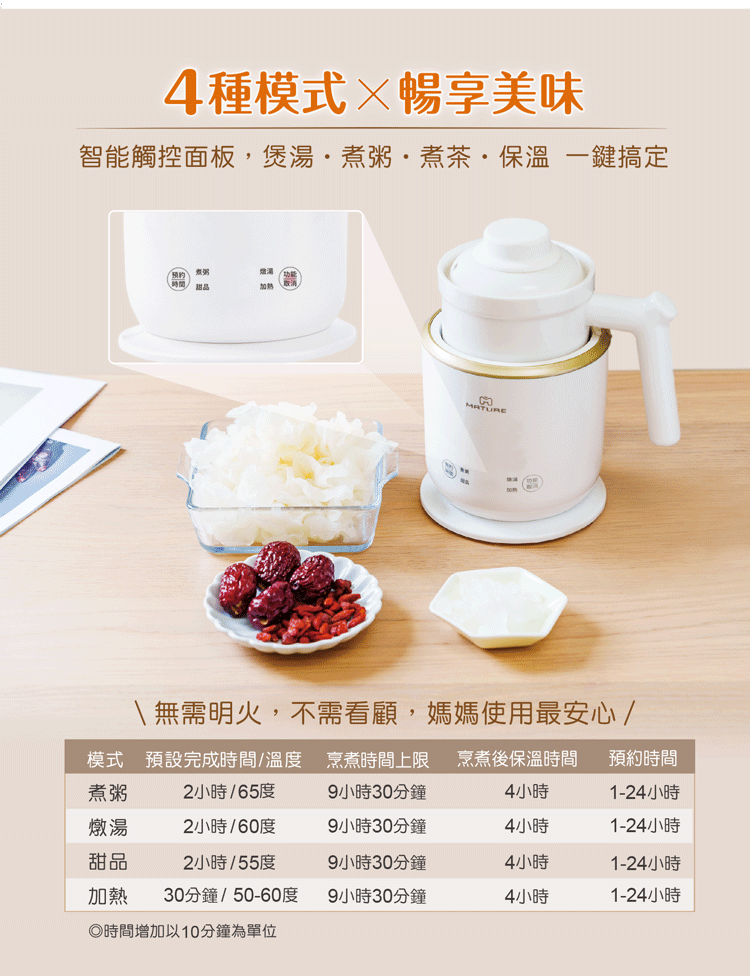 4in1能煮,能燉(煮粥、燉湯、甜品、加熱)暢享美味