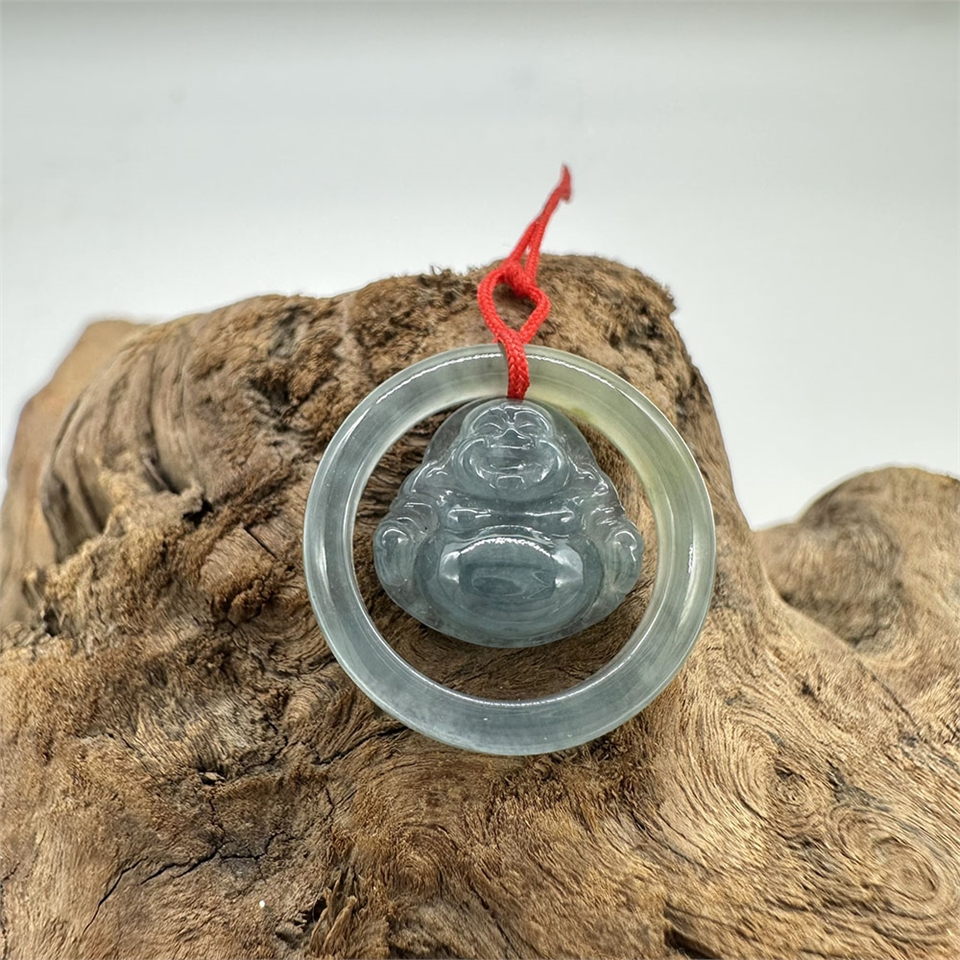 【肌容雪】緬甸天然A貨翡翠冰藍翡翠彌勒佛吊飾 編號923