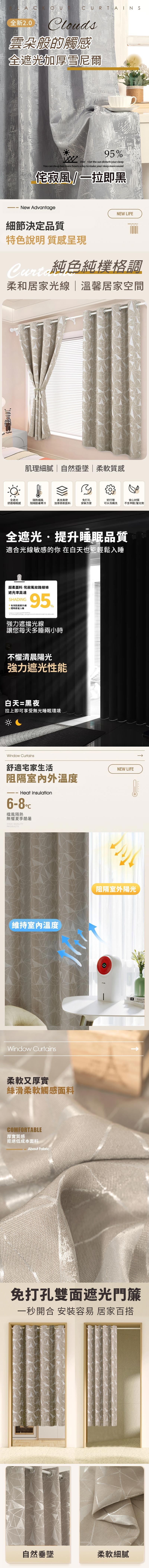 全遮光布簾,更好的遮擋隱私、阻擋光線減少能源消耗、阻擋噪音以及保護地板和家具免受陽光曝曬,