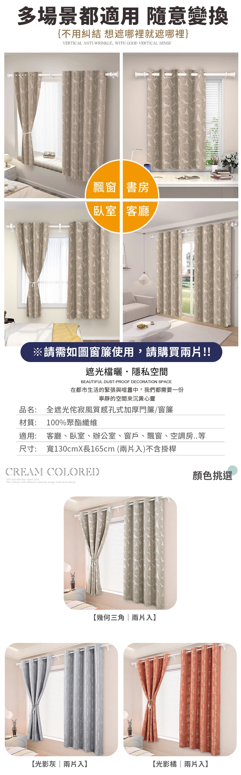※ 溫馨提醒:如需與窗簾情境圖一樣的效果,請購買兩片使用
