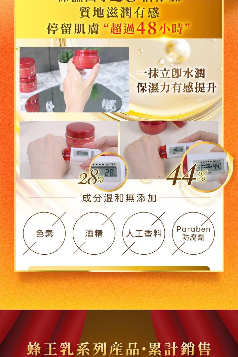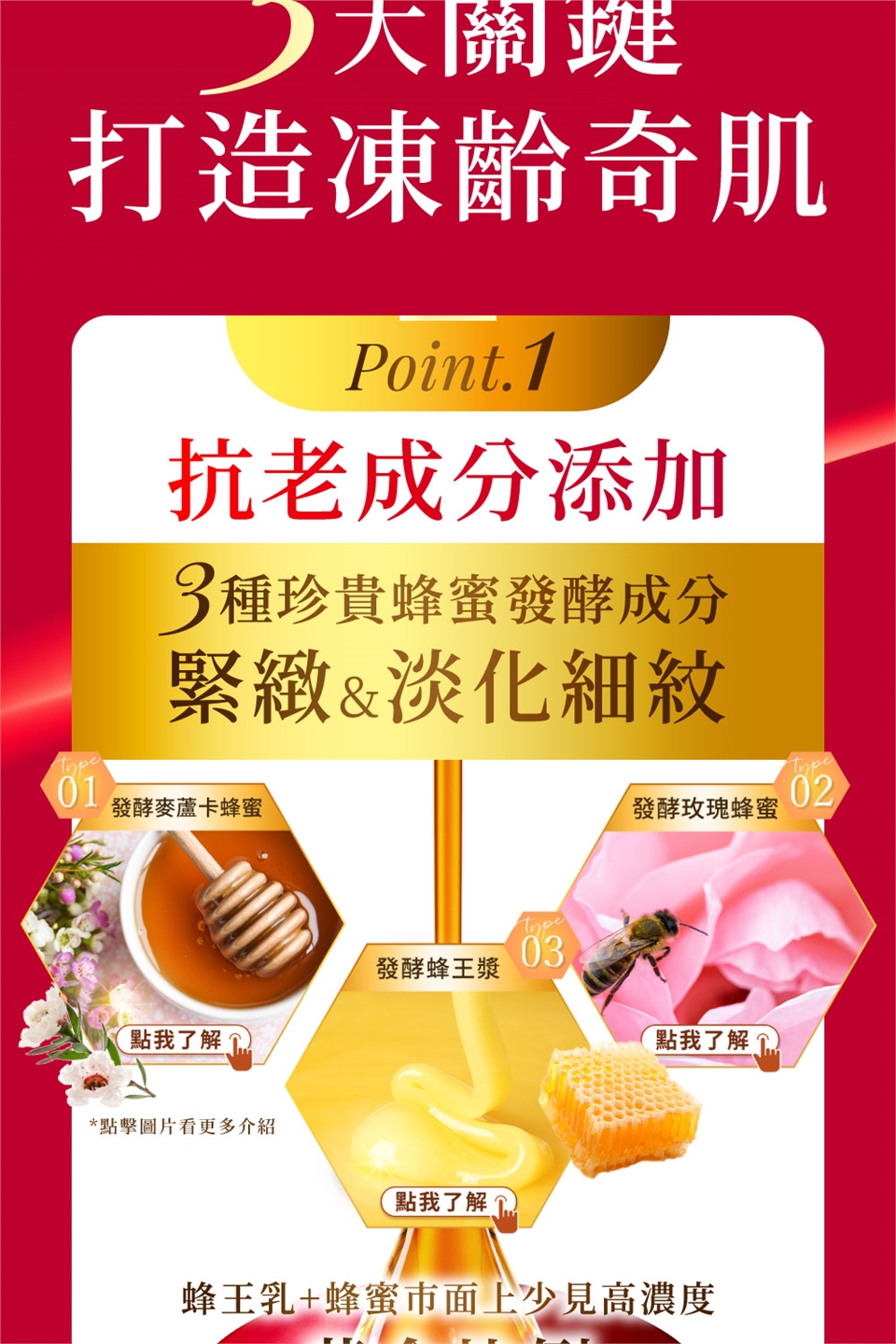 水,矽靈,三異辛酸甘油酯,角鯊烷,甘油,雙甘油,PEG-3聚二甲基矽氧烷,甘油硬脂酸,硬脂酸,甘油葡糖苷,1,3-丙二醇 ,丁二醇,戊二醇,失水山梨醇三硬脂酸酯,苯氧乙醇,PEG-5硬脂酸酯,PEG-40硬脂酸酯,鯊肝醇,黃原膠,檸檬酸鈉,甜菜鹼,維生素E,辛酸/癸酸三酸甘油酯,卵磷脂,三聚羧基硬脂酸二季戊四醇酯,蜂蜜,檸檬酸,環戊矽氧烷,溫泉水,α-葡聚糖,麥芽糖糊精,氫化油菜籽油醇,甘油硬脂酸SE,石榴籽細胞培養溶產物,山崳醇聚醚-30,山崳酸,葡糖基神經醯胺,澳洲堅果籽油,蜂王漿萃取,乳油木果脂,咯烷酮羧酸鈉,霍霍巴籽油,野薔薇果萃取,蜂蜜萃取,梔子果萃取,椰油基-葡糖苷 ,精氨酸,玻尿酸鈉,水解膠原蛋白,水解透明質酸,蜂膠萃取,聚甘油-10硬脂酸酯,法地欖仁果萃取,葡萄糖,雛菊花萃取,維他命C酯磷酸鈉鹽,纖細老鸛草萃取,葡糖桿菌/蜂蜜發酵產物濾液,番茄果萃取,刺梨果萃取,線狀阿司巴拉妥萃取,啤酒酵母菌萃取,白桑根萃取,人參根萃取,野葛根萃取,稻萃取,豆瓣菜葉/莖萃取,神經醯胺NP,神經醯胺AP,生物類黃酮,來檬汁,貫葉連翹花/葉/莖萃取,甜橙汁,棗果萃取,洋常春藤葉/莖萃取,山金車花萃取,歐洲七葉樹籽萃取,北美金縷梅葉萃取,庫拉索蘆薈葉萃取,小球藻萃取,芍藥根萃取,神經醯胺NG,東當歸根萃取,茯苓菌核萃取,紅花花萃取,牡丹根萃取,檸檬汁/香櫞汁,藥鼠尾草葉萃取,菜薊葉萃取,磷酸二鈉,牛蒡根萃取,肥皂草葉萃取,葡萄葉萃取,橙皮苷甲基查爾酮 ,香櫞果萃取,乳酸桿菌/水解蜂王漿發酵產物濾液,葡萄柚果萃取,野山楂果萃取,硬脂醇聚醚-20,蘋果果萃取,卡波姆,磷酸二氫鈉,鯨蠟硬脂醇聚醚-25,辛乙二醇,聚山梨醇酯 20,四胜肽-21,二胜肽,六胜肽,膽固醇,神經醯胺NS,棕櫚醯三肽-7,神經醯胺EOP,神經醯胺EOS,棕櫚醯五肽-4 ,己醯基神經鞘氨醇,己醯基植物鞘氨醇,棕櫚醇,苯乙醇,磷酸鉀,氯化鉀,氯化鈉,氯己定二葡糖酸鹽,乳酸鈉,山梨酸鉀,乙基己基甘油,油酸甘油酯,抗壞血酸棕櫚酸酯,植酸