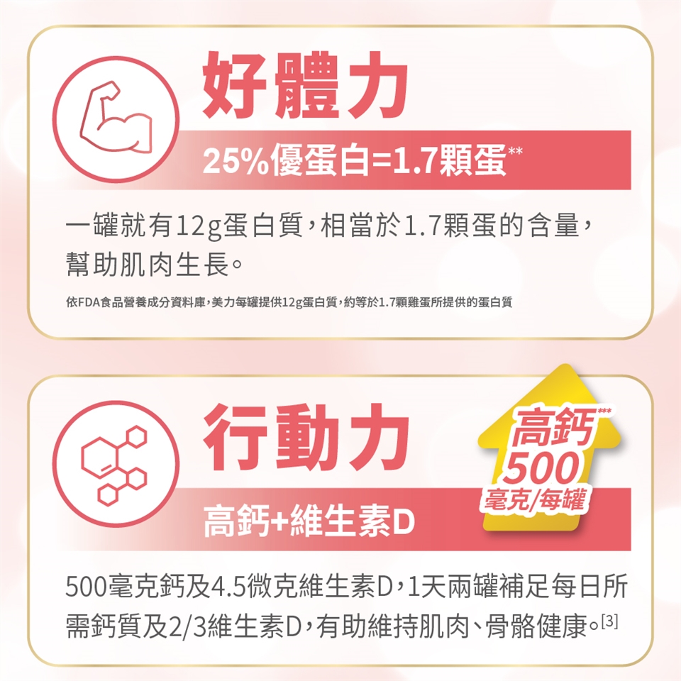 •即開即飲,使用前請搖勻,常溫及冰涼時皆可飲用,如需溫熱,請隔水加熱,但勿煮沸以免高溫破壞營養成分•請依照醫師或營養師指導,視狀況與耐受情形,作為唯一營養來源時,每日建議使用2罐