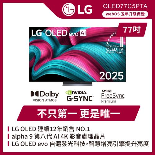 LG 樂金 77吋 LG OLED evo AI C5極緻系列 4K 智慧顯示器(可壁掛)-OLED77C5PTA(含基本安裝)