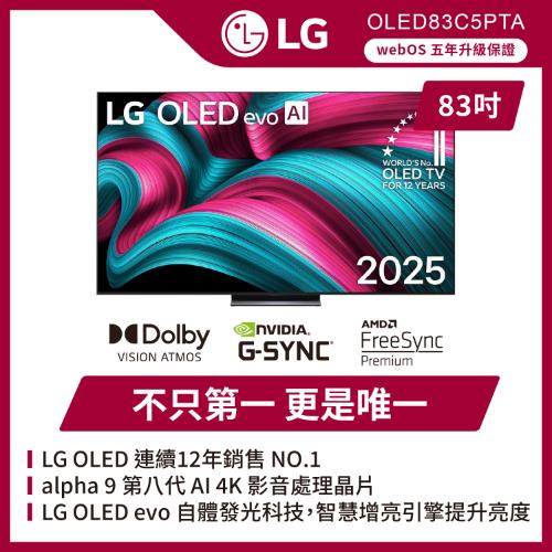 贈藍牙音響↘LG 樂金 83吋 LG OLED evo AI C5極緻系列 4K 智慧顯示器(可壁掛)-OLED83C5PTA(含基本安裝)