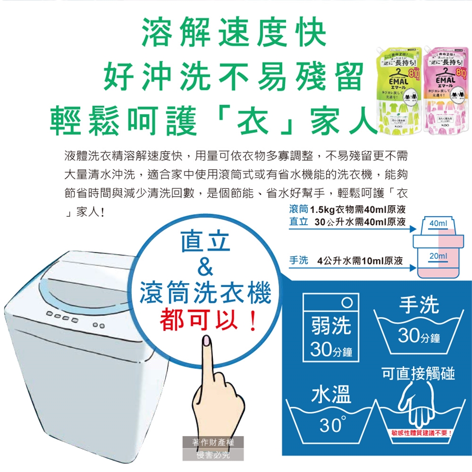 ●品名:EMAL精緻衣物防縮抗褶皺護色香氛洗衣精補充包