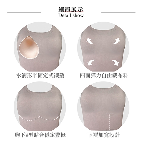 5. 胸下W型貼合—襯墊符合胸部位置,穩定豐挺、自由活動不移位。