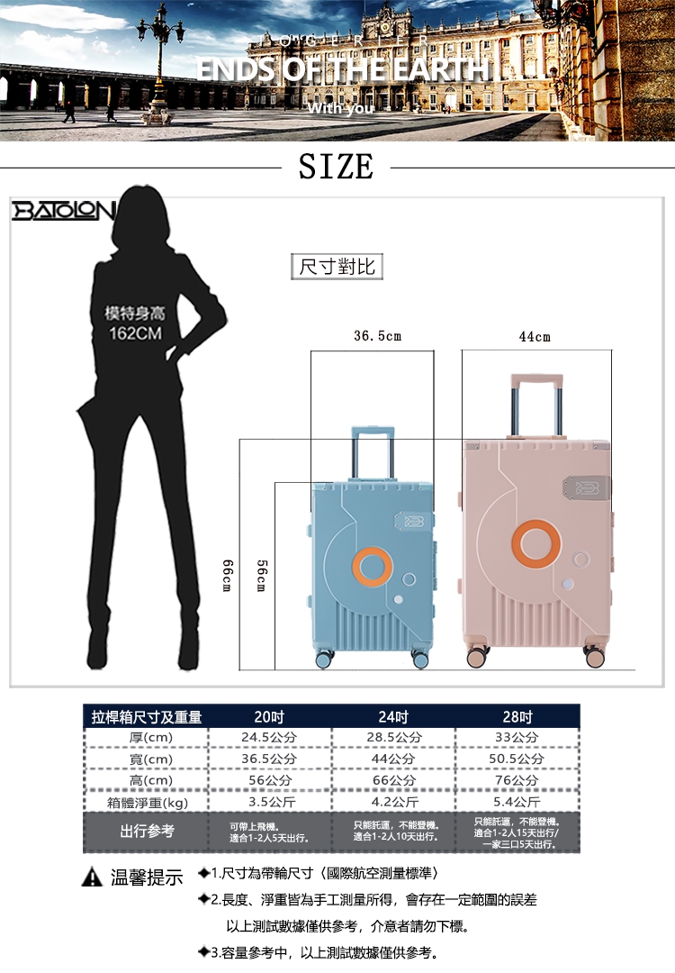 ◆尺寸(長*厚*高,含輪高):24吋/約44*28.5*66cm