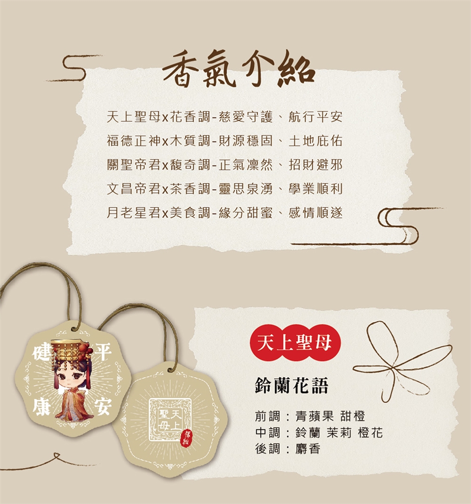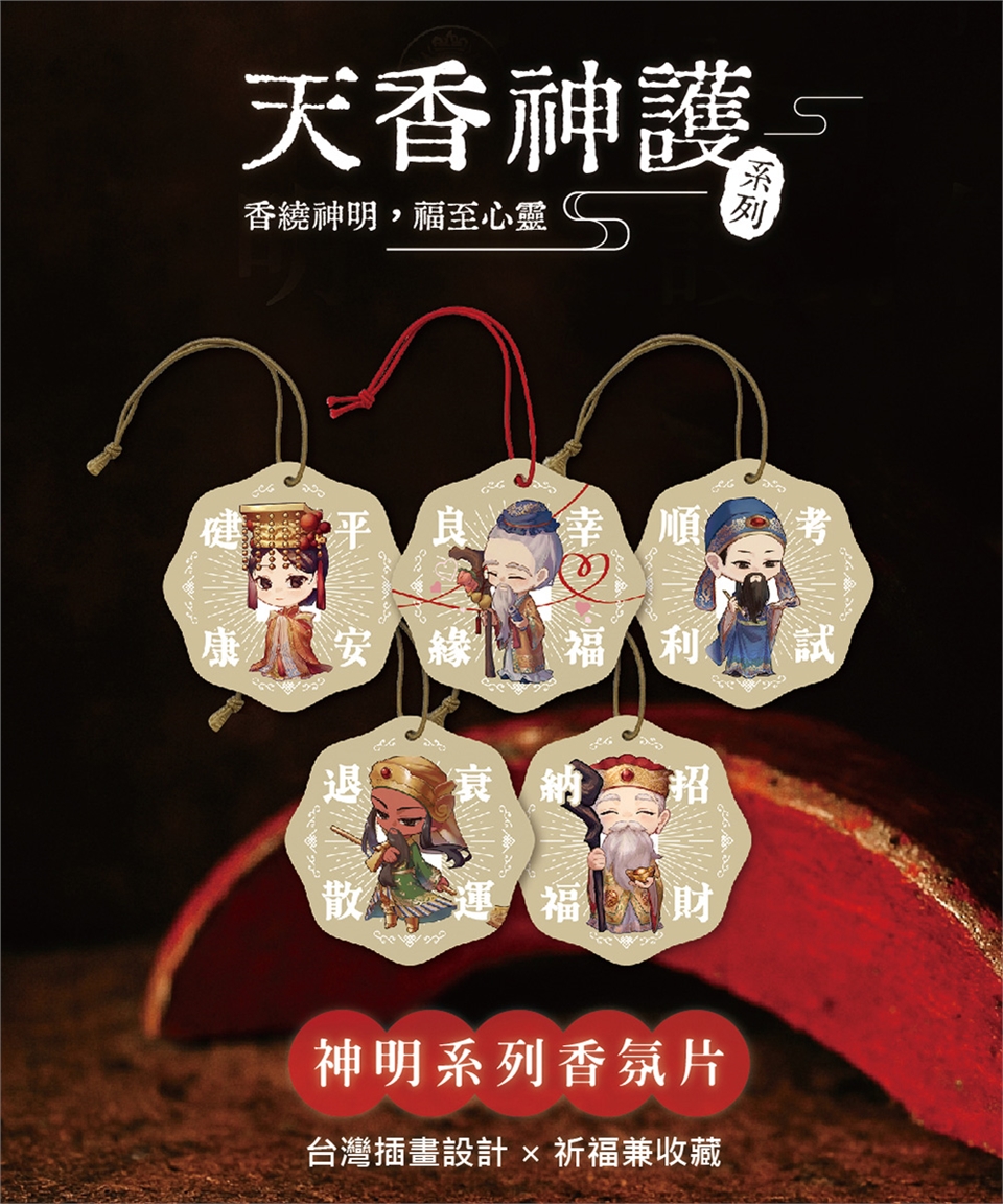 天香神護香氛片,精選五位常民信仰神明,