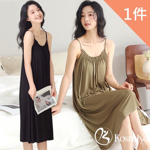 【Kosmiya】1套 帶胸墊 莫代爾 簡約甜心無袖睡裙/女睡衣/睡裙/居家服/連身洋裝/洋裝