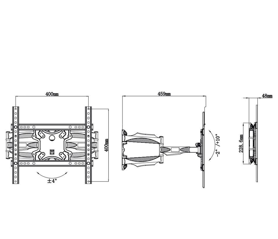 支臂可左右旋轉擺動約120度 ( 請注意 :電視的寬度決定擺幅的大小)
