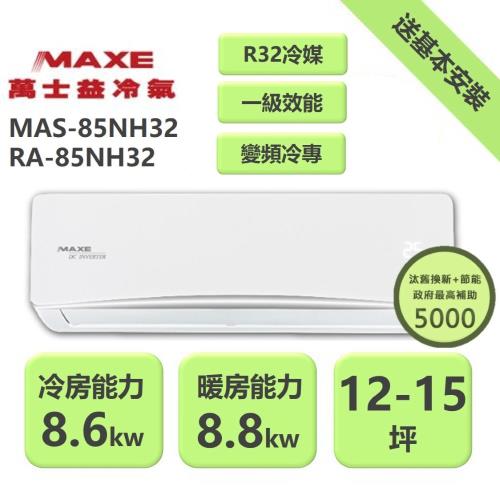 【家電速配 MAXE 萬士益】NH尊榮系列 12-15坪 一級變頻冷暖分離式冷氣MAS-85NH32/RA-85NH32