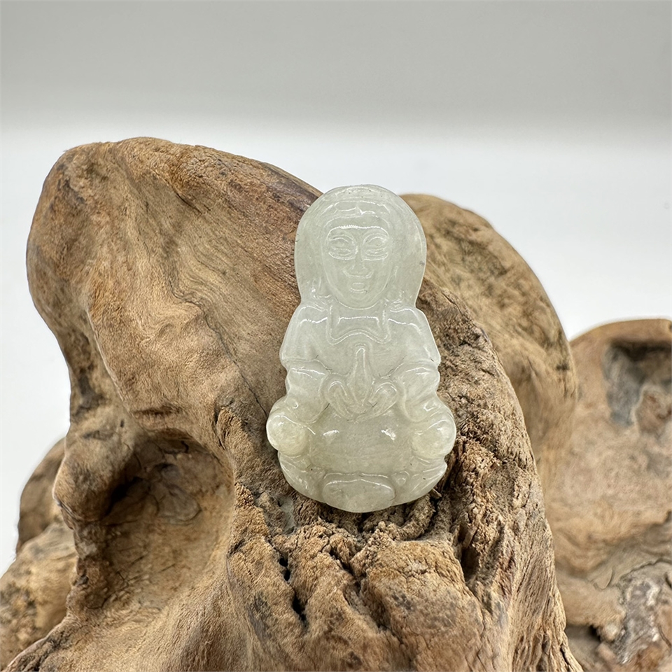 【肌容雪】緬甸天然A貨翡翠白翡觀音吊墜 編號950