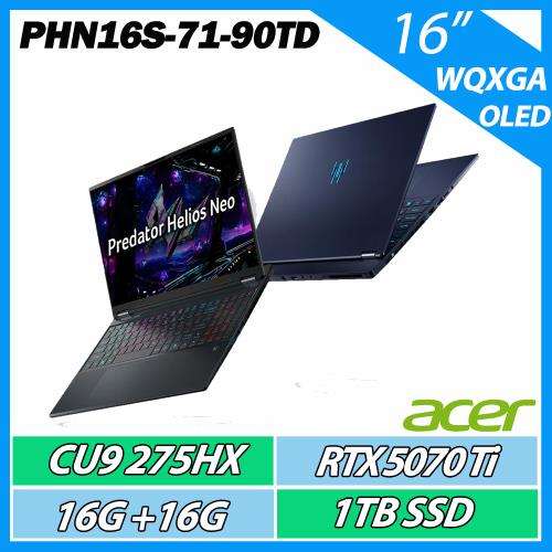 ACER 宏碁PHN16S-71-90TD黑(Ultra9 275HX/32G/1TB/RTX5070Ti-12G/WIN11/16) AI電競筆電