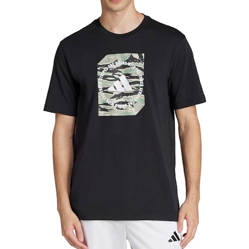 【Adidas】2025男時尚迷彩圖標黑色圓領短袖T恤