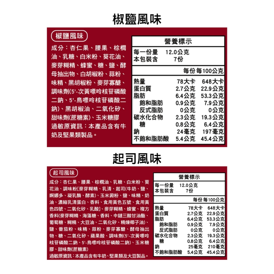 |萬歲薄脆堅果椒鹽風味| 本產品含有牛奶及堅果類製品。