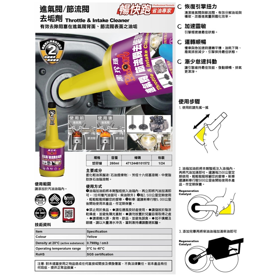 使用後可恢復馬力、加速靈敏、省油省錢,讓引擎維持最佳狀態,發動順暢、排氣更潔淨。
