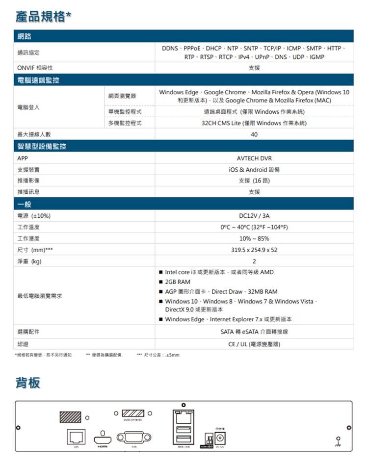 【此組合為 AVTECH陞泰組合 DGH2114BX-U1 16 主機+DGM2203SVT 200 紅外線半球型網路攝影機16支】