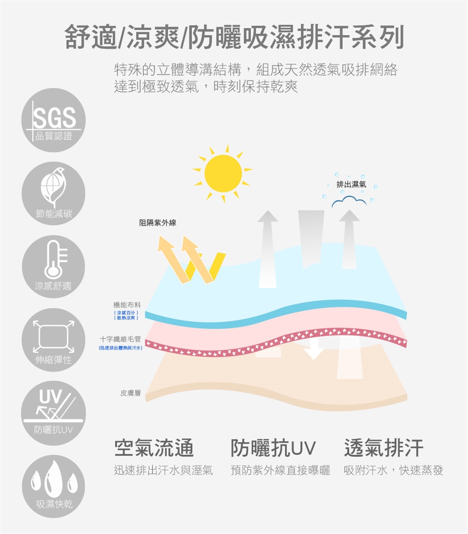 *排汗-吸濕排汗布料,擺脫炎夏黏膩感