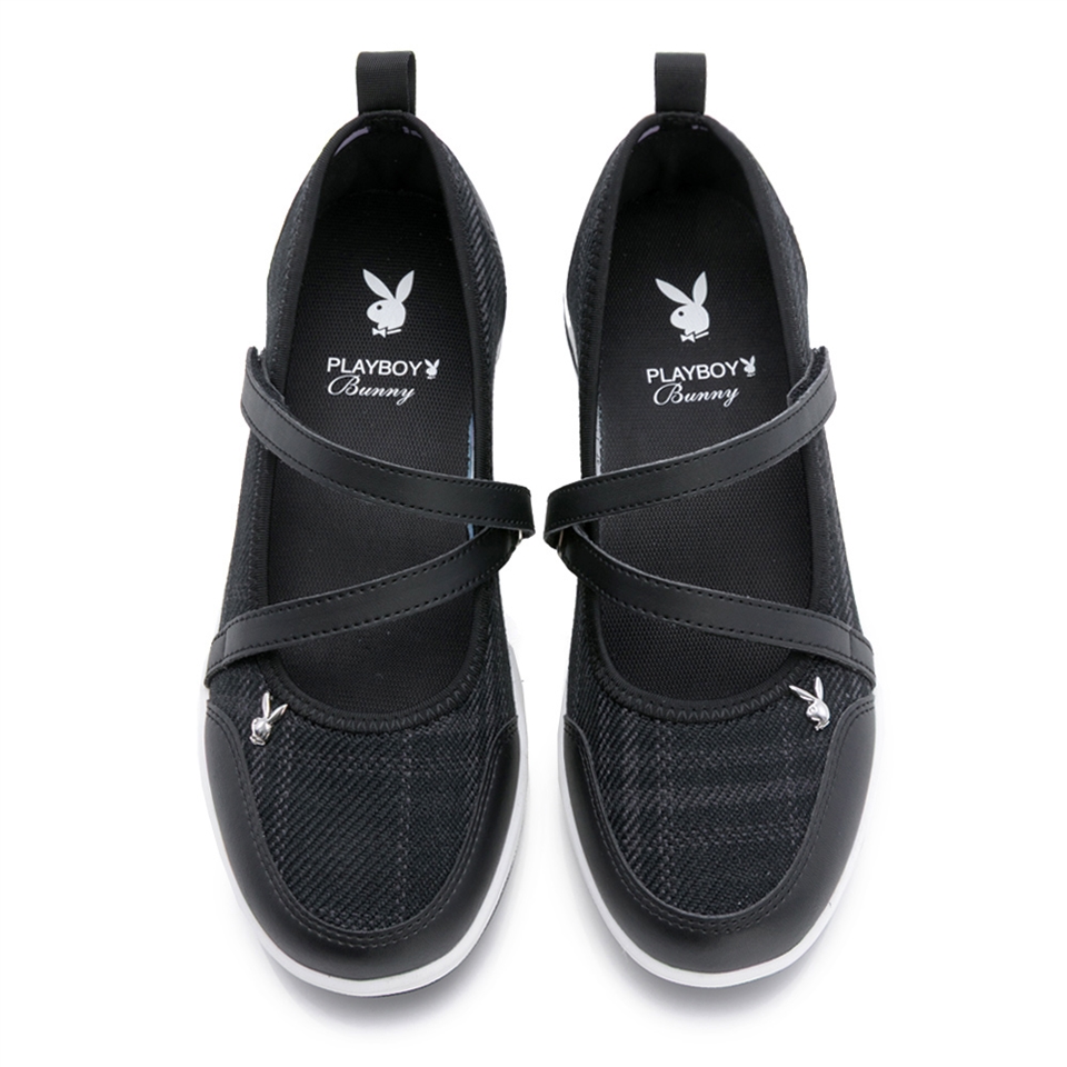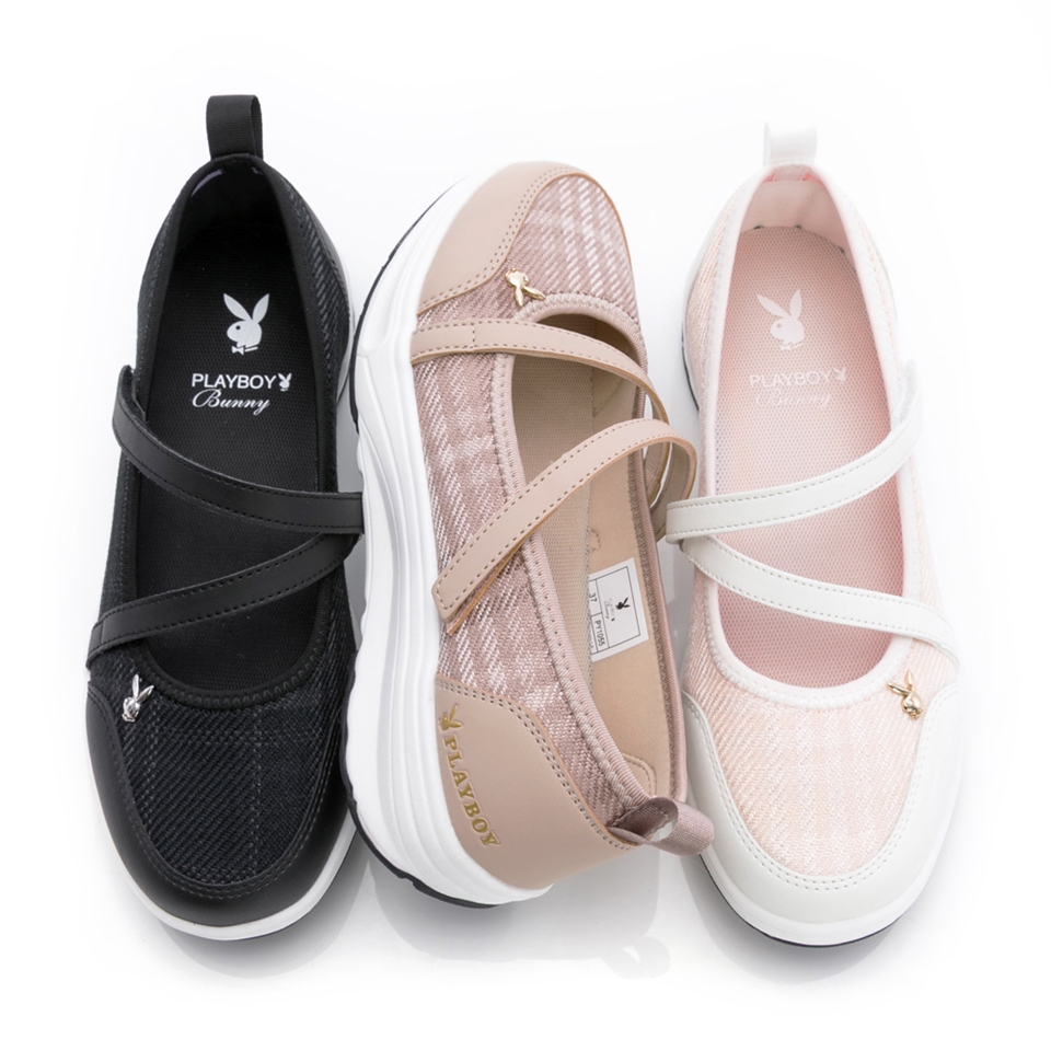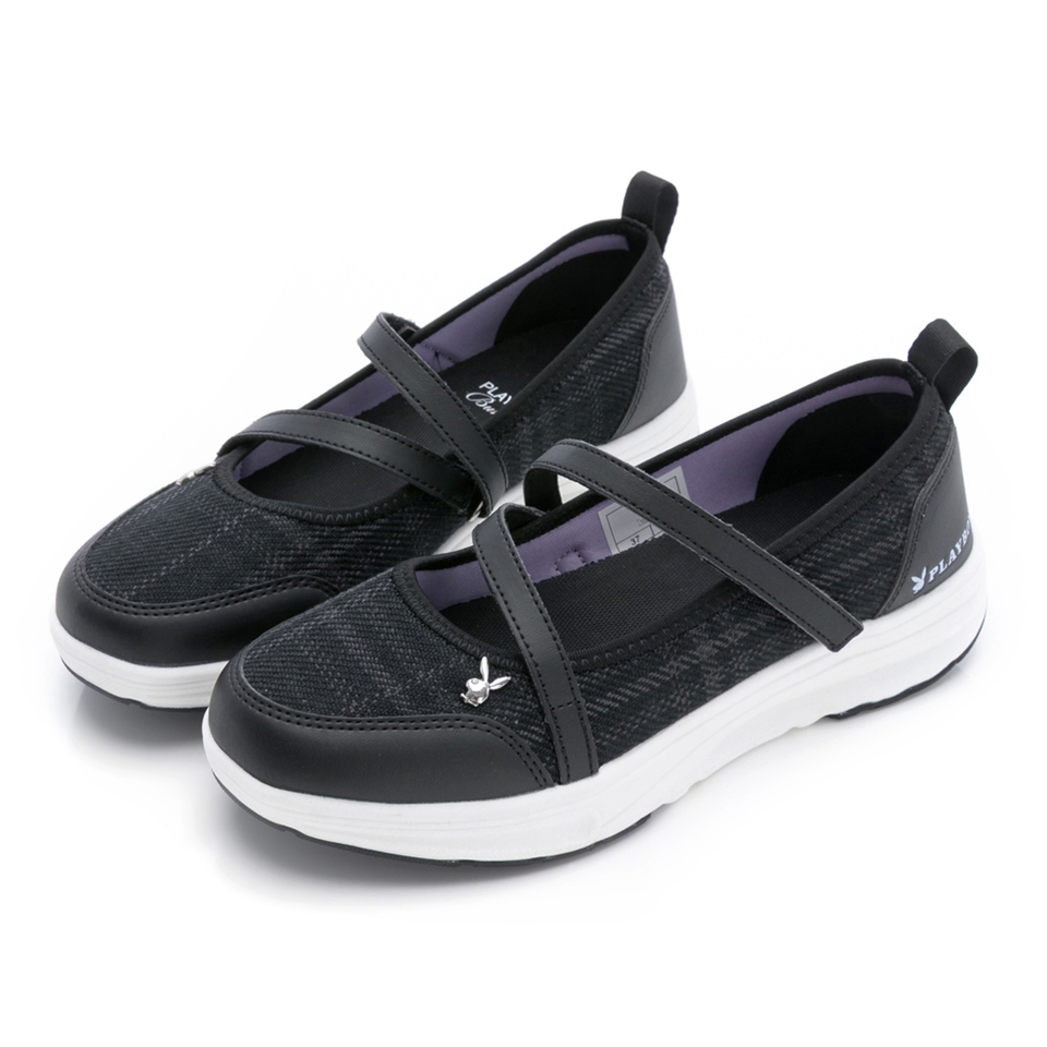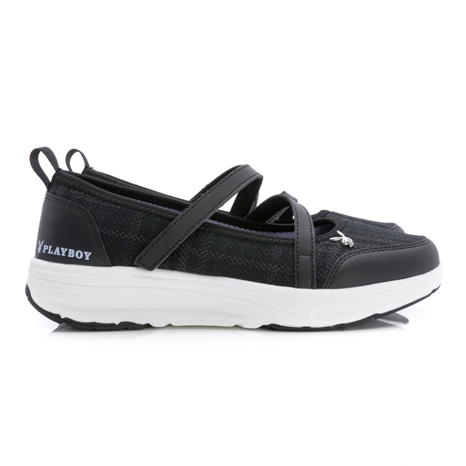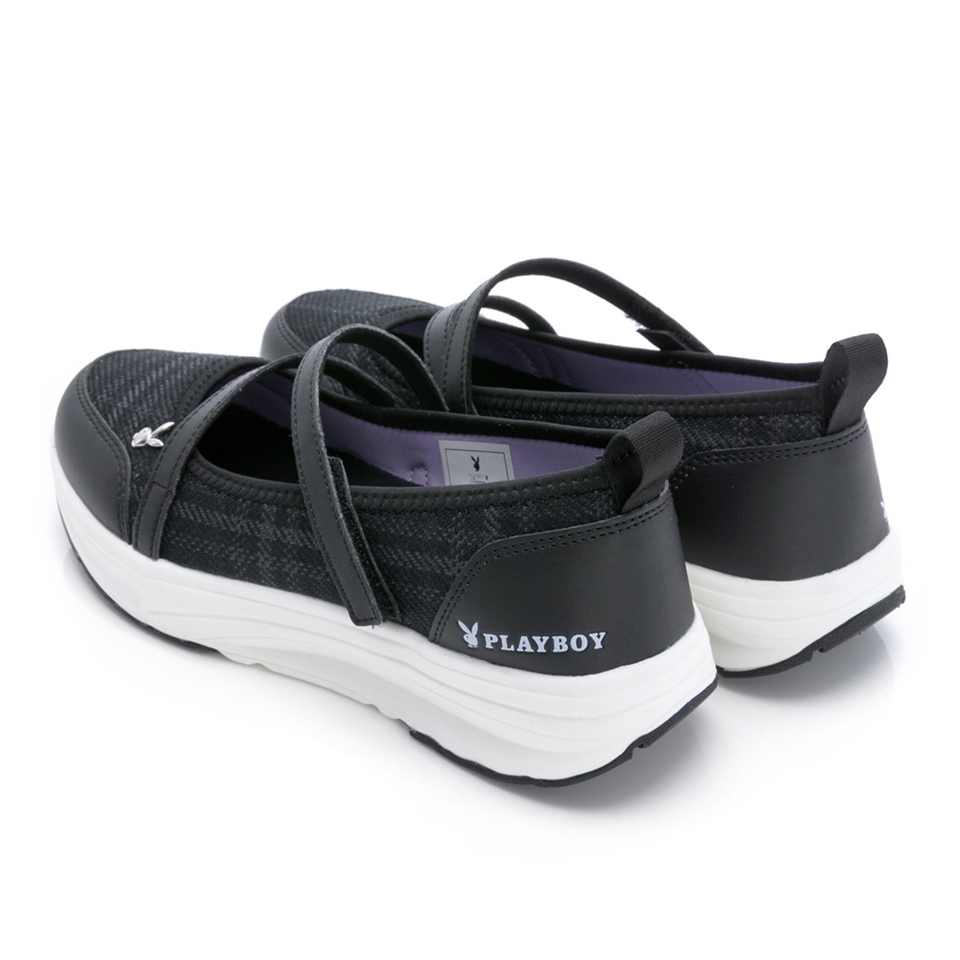 PLAYBOY 蘇格蘭紋雙帶千層休閒鞋-黑