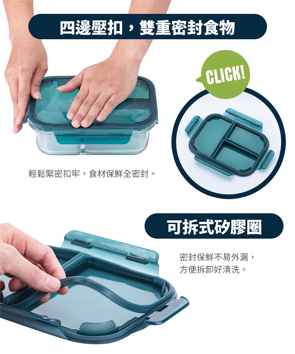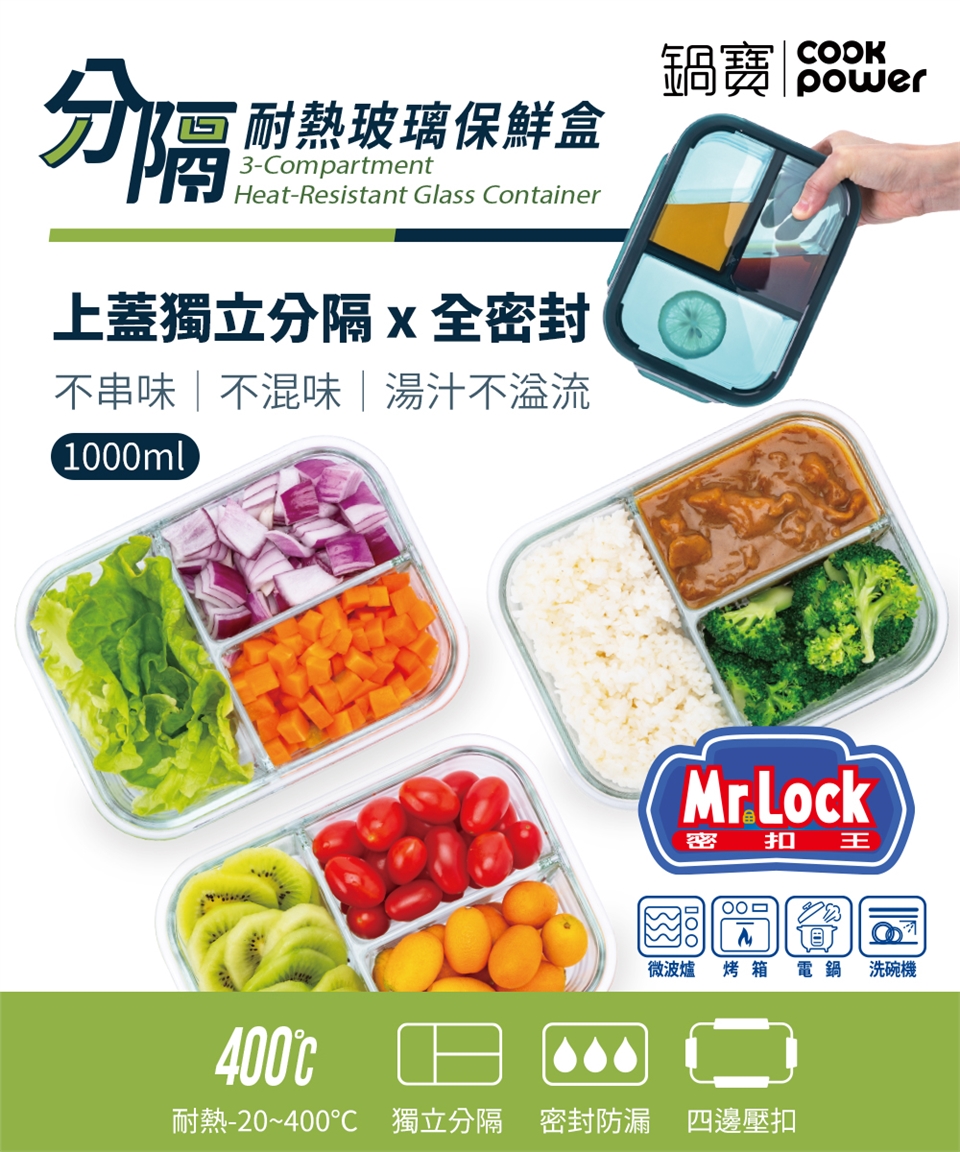 品名:【【CookPower鍋寶】耐熱玻璃三格分隔保鮮盒1000ml(BVG-10031)
