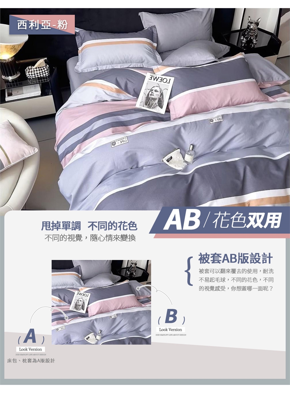 貼心小提醒02-花色為隨機裁切,以實際收到的花色為主(床包、枕套為A版,被套為AB版)