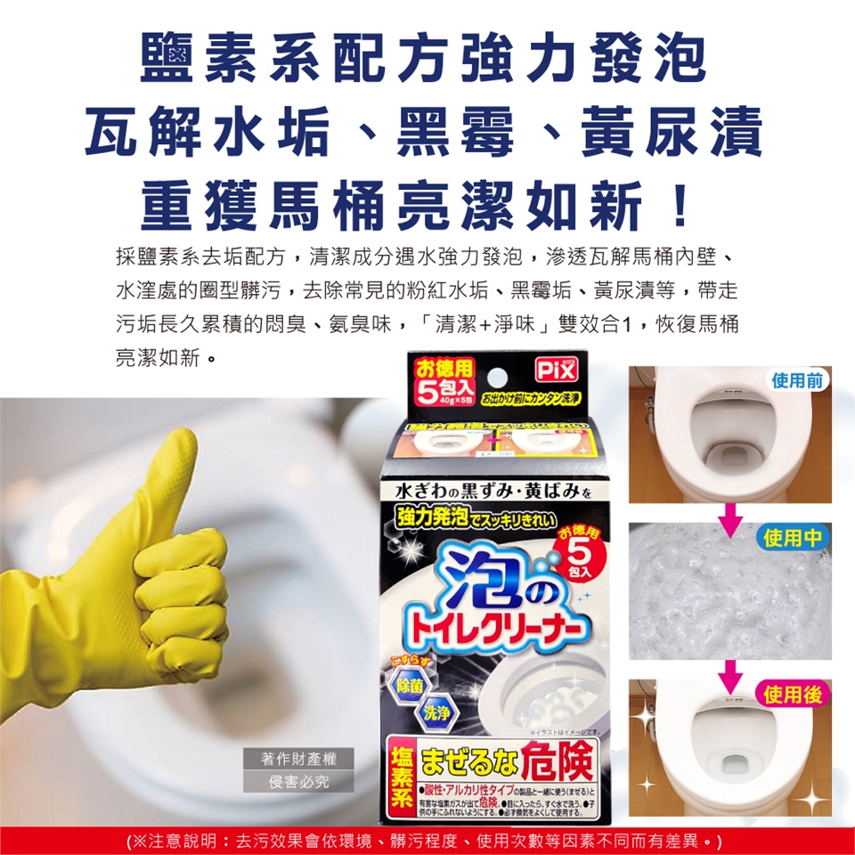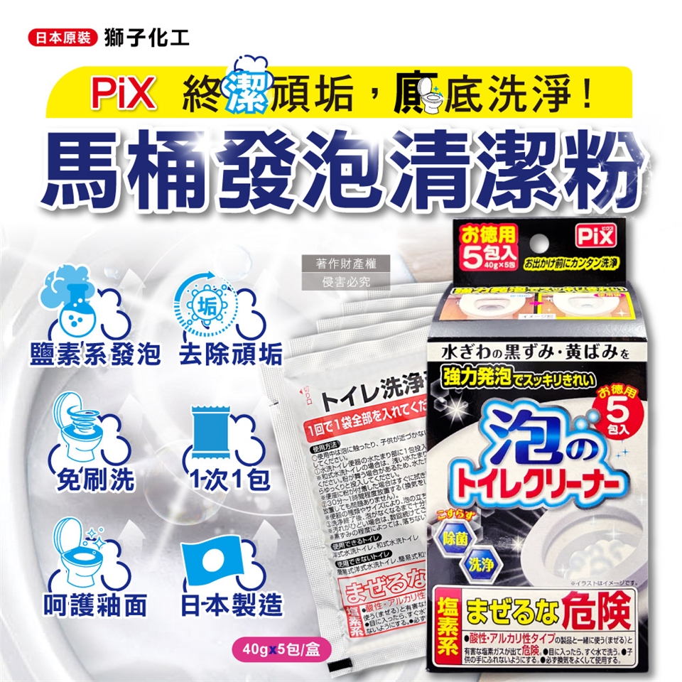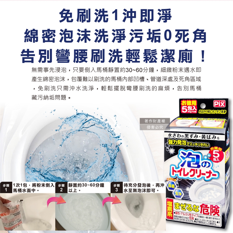 ●品名:PIX免刷洗強力發泡去污淨白消臭馬桶清潔粉