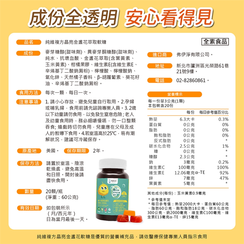 純維複方晶亮金盞花萃取軟糖