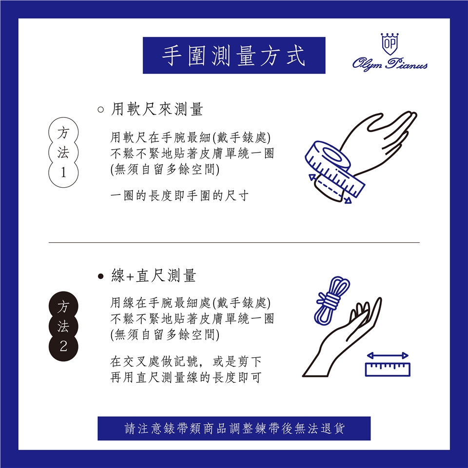 若您想預先調整錶帶,請於備註欄註明手錶內圍,