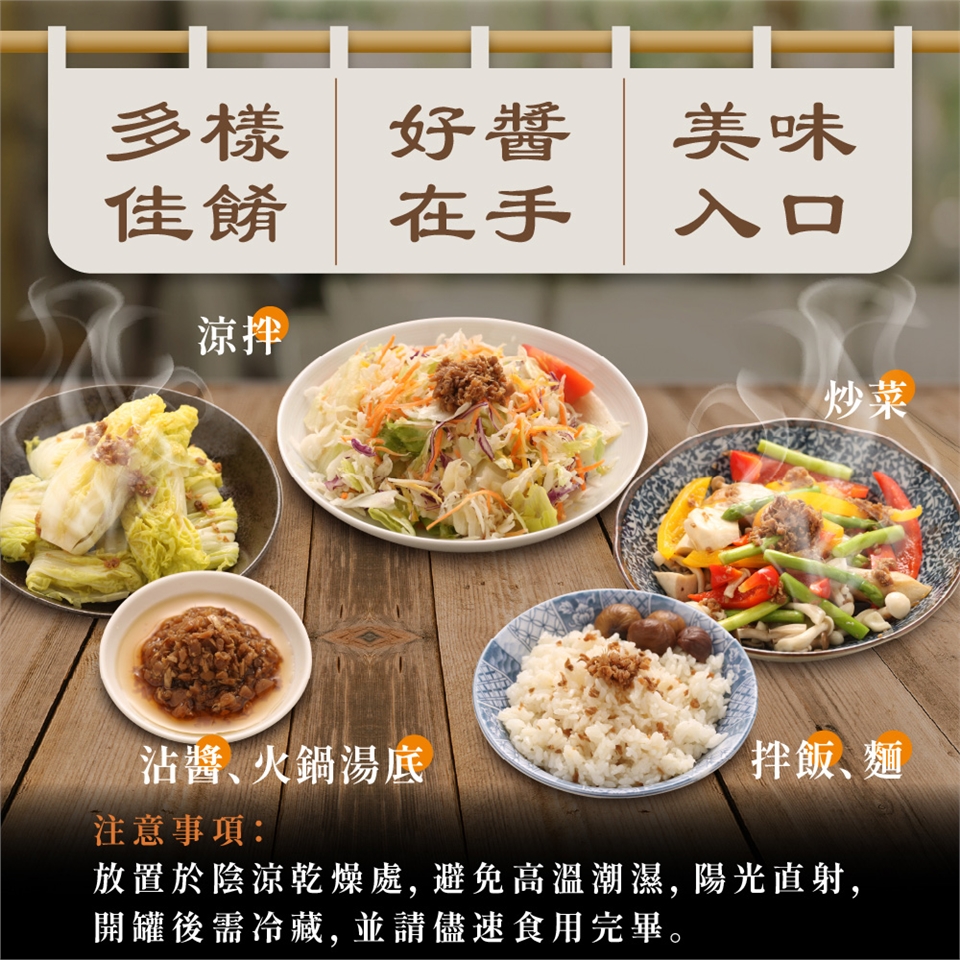 可涼拌、沾醬、拌飯、拌麵、火鍋湯底皆適合
