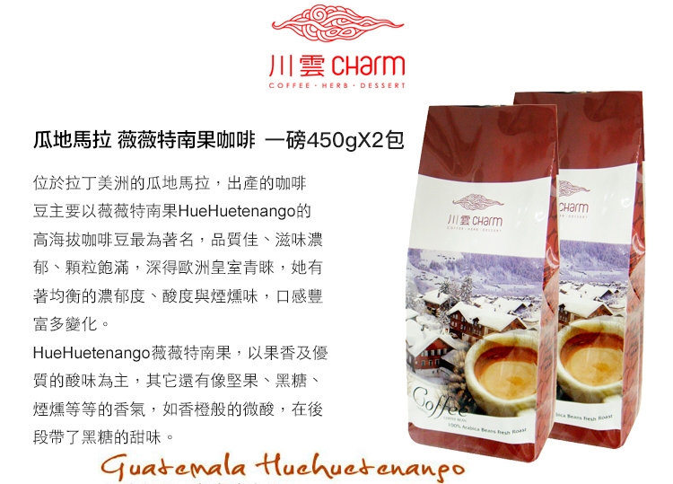 HueHuetenango薇薇特南果,這支咖啡給人最大的印像就是那煙燻味,其它還有像堅果、黑糖等等的香氣,在品嚐下那如香橙般的酸質一下子讓舌頭兩側立即生津,在後段帶了黑糖的甜味。咖啡產區:瓜地馬拉