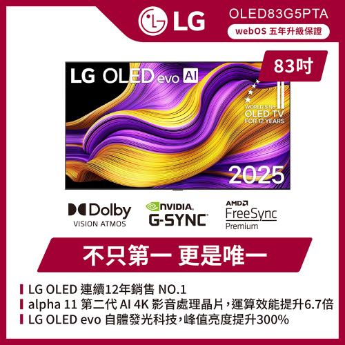 LG 樂金 83 吋 LG OLED evo AI G5零間隙藝廊系列 4K 智慧顯示器-OLED83G5PTA(含基本安裝)