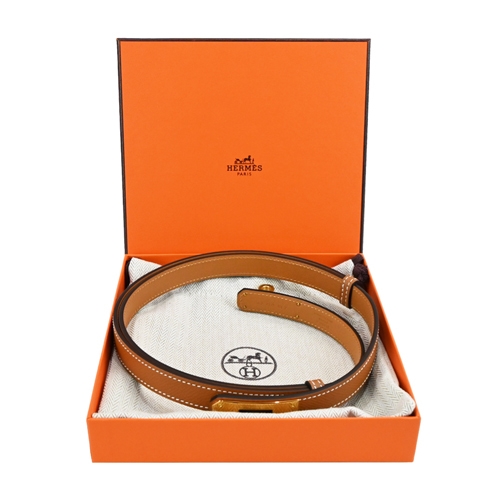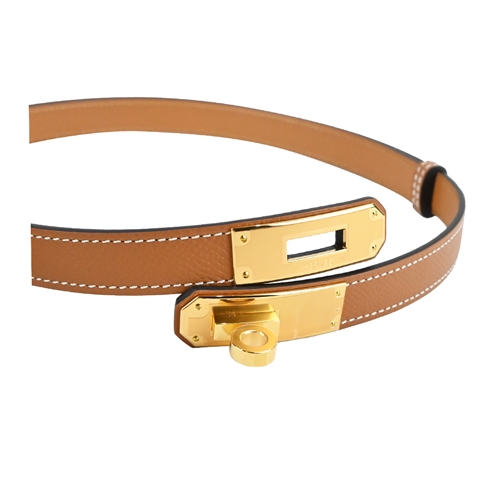 Hermes 愛馬仕 Kelly Epsom皮革女仕細腰帶/皮帶(37金棕/金釦)