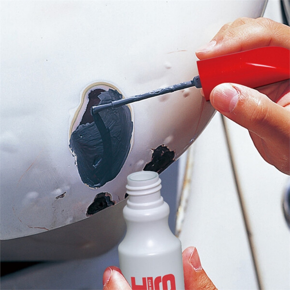1.先使用「SOFT99水砂紙」(另售)清除修補部位的鏽蝕和汙垢,然後再使用「SOFT99去蠟劑」(另售)進行脫脂處理。