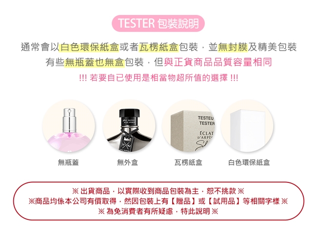※所有商品均係本公司供貨商有價取得,然因商品包裝上有【贈品】或【試用品】等相關字樣,為免消費者有所疑慮,特此說明。
