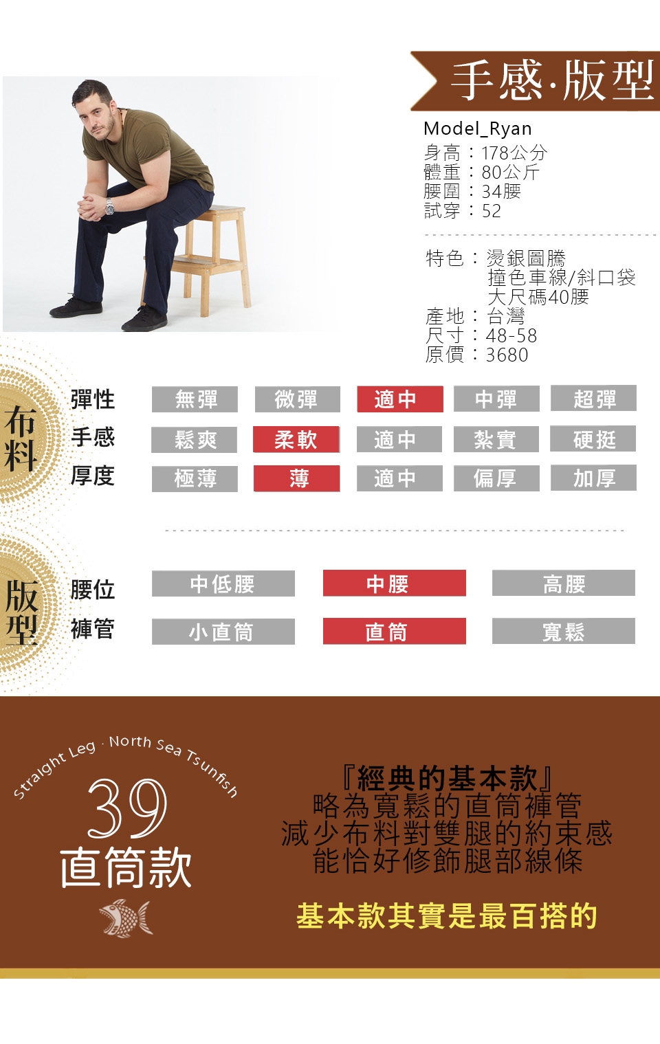 我們的堅持在於使用好的材質、簡單設計,不斷的開發順應時代潮流 開創出屬於成熟男性的自我風格,每一季穩定設計多樣化的褲款