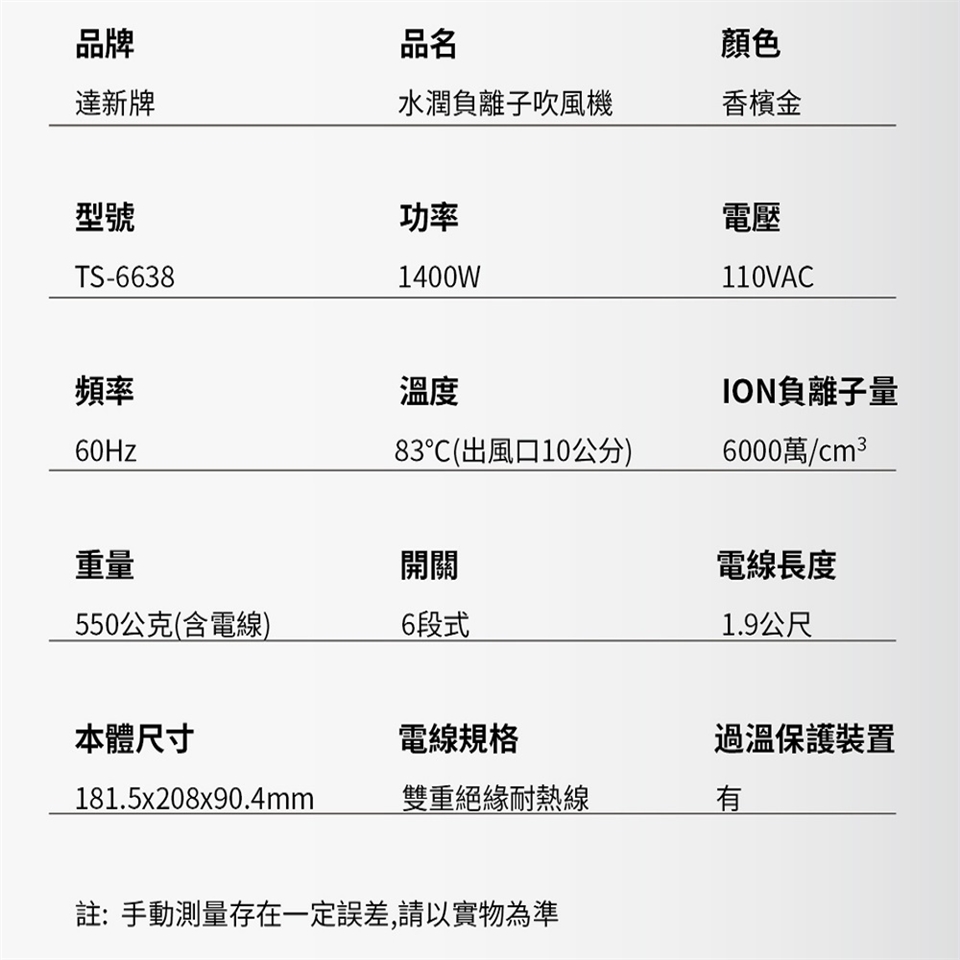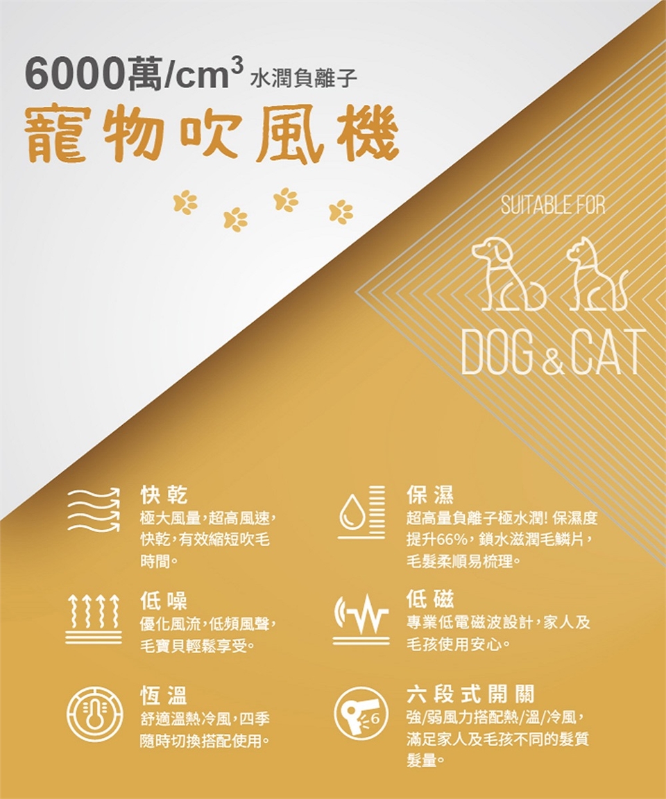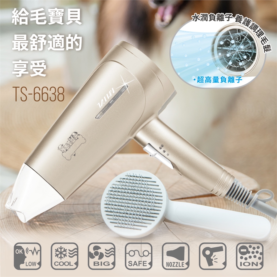 【TASHIN達新牌】抗菌水潤負離子寵物吹風機TS-6638(附寵物梳)
