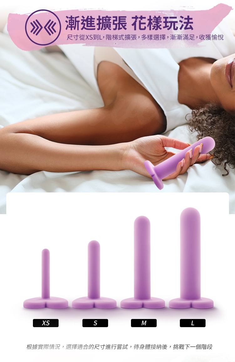 有 4 個不同尺寸的擴張器,起始寬度僅為1.3厘米,讓您可以從小處開始,並在您準備好時向上移動。這些擴張器的心形底座很可愛!配合優質水基潤滑劑一起使用,更容易插入。