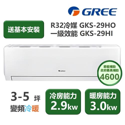 【家電速配 GREE 格力】GKS尊爵系列 3-5坪 一級變頻冷暖分離式冷氣 GKS-29HO/GKS-29HI