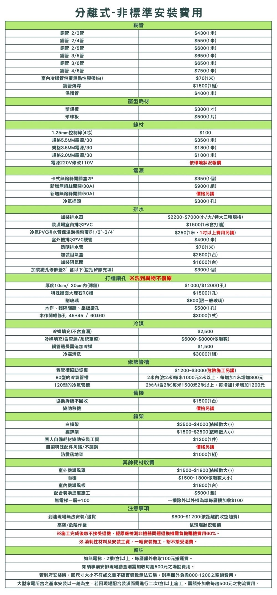含基本安裝(額外施工項目另行付費)