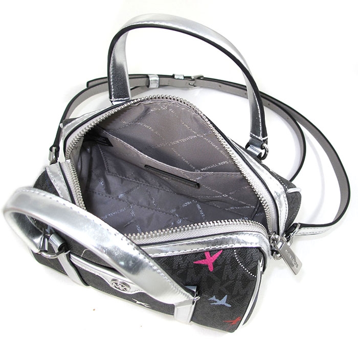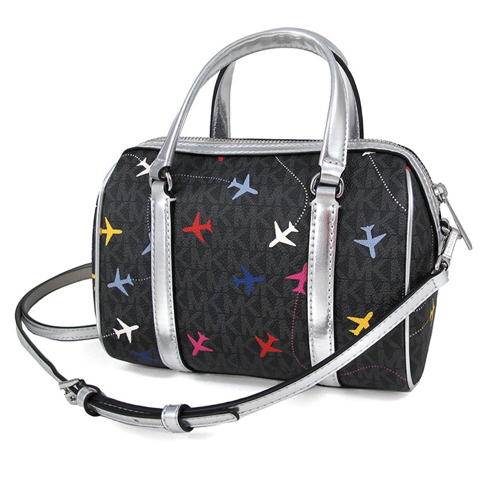 MICHAEL KORS 銀字LOGO防刮飛機壓紋波士頓兩用包。包款內有1內袋及一外袋。搭配可拆卸式可調整背帶長短做肩斜使用,貼心設計不論是上班或出遊,是您不可或缺的實用包款!
