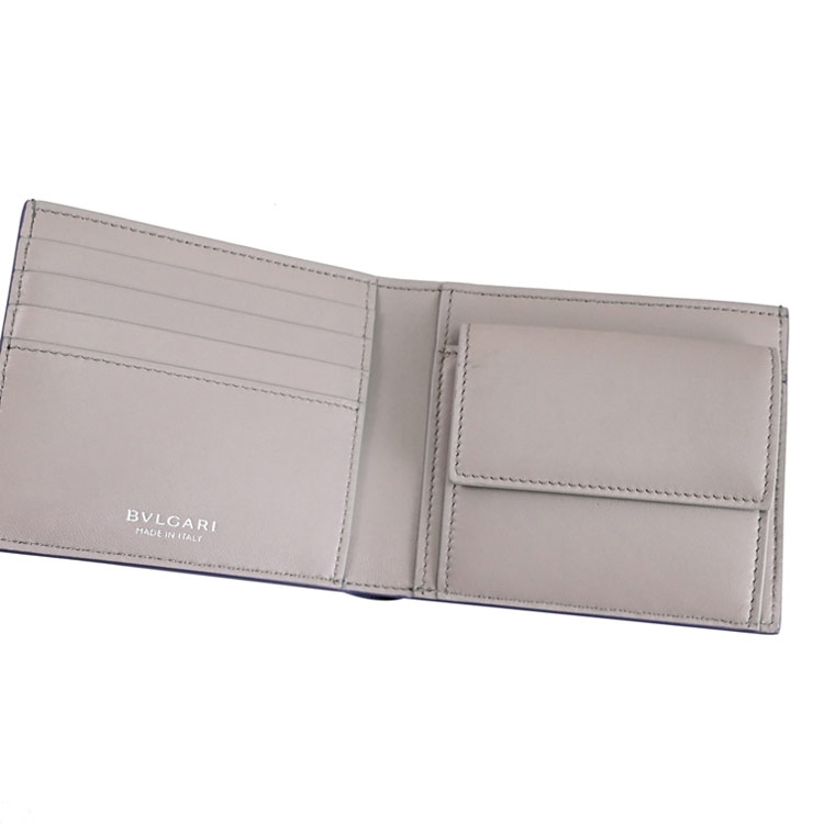 寶格麗 BVLGARI 於1884年於羅馬創立,多年後從一家單獨的珠寶店搖身一變成為一家國家品牌,以絢爛大膽色彩組合設計,獨特的風格而著稱,得到世界各國社會名流的熱烈追捧,備受皇室貴族、影視明星的青睞;專櫃經典新款短夾,採用柔軟NAPPA皮革拼接撞色內層設計,對開式,內有4信用卡夾層+3貼層+2鈔票夾層+1零錢袋,簡約時尚的對開短夾,可放小包好收納,顯出低調都會時尚感。